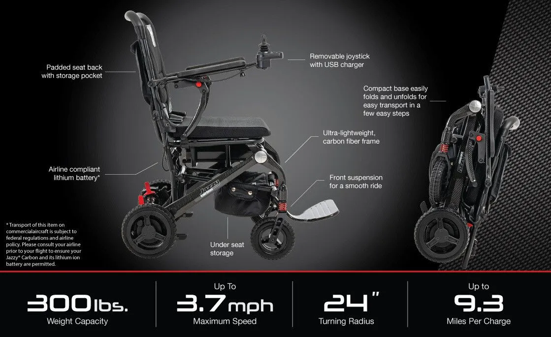 When it comes to mobility solutions, the Jazzy® brand is synonymous with exceptional performance and quality. But with the Jazzy® Carbon, the spotlight shifts to portability without sacrificing strength, comfort, or reliability. Designed with cutting-edge carbon fiber technology and a lightweight lithium-ion battery, this innovative power wheelchair redefines convenience and freedom for travelers and active individuals alike.