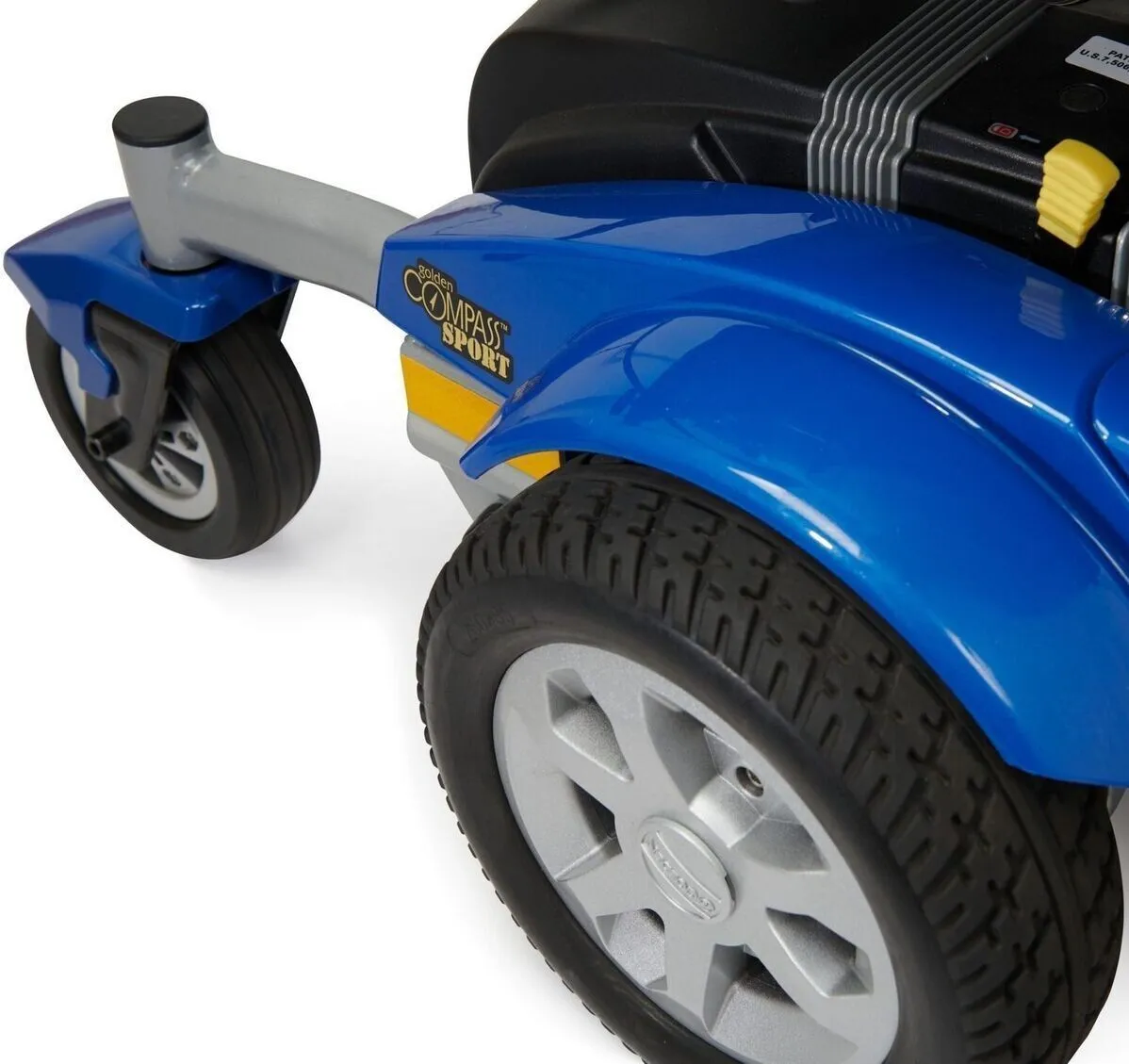 The Golden Compass™ Sport #GP605 is not just a power wheelchair; it’s a blend of style and practicality. Its sleek, sporty design is available in eye-catching red or blue, with durable, solid color-injected plastic shrouds that add both aesthetic appeal and resilience. Whether you’re navigating the tight corners of your home or exploring outdoor pathways, the Compass™ Sport is built for superior maneuverability, making it an excellent choice for any environment.