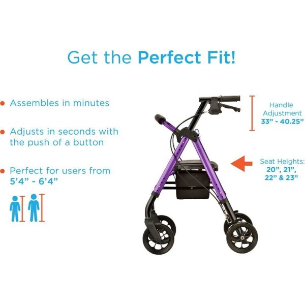 - GET THE PERFECT FIT with the Quick-Fit push buttons to easily adjust the handles and legs. The seat has 4 height adjustments: 21”, 22”, 23” & 24” and the handles adjust from 33” – 40”. The approximate user height is 5’4” – 6’4” and has a durable 450 lb weight capacity. Comes with the best warranty – a lifetime warranty on the frame and 5 year warranty on the brakes. Your complete satisfaction is our only goal.