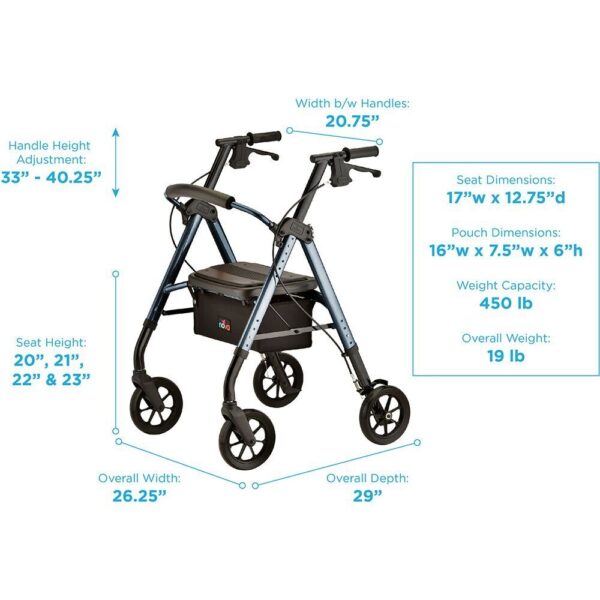 STAR 8 DX Heavy Duty Rollator, 450 lb. Weight Capacity