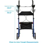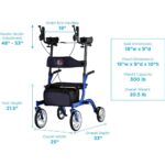 • FOLDABLE, LIGHTWEIGHT & EASY TO TRANSPORT with a foldable design, handles that are easy to adjust to lowest setting (to make it more compact) with just one click (vs. multiple clicks) and weights only 20 lbs. making it easy to lift, carry and store. The Phoenix Rise UP Rollator has an approximate user height of 5’2” – 6’0” and has a 300 lb. weight capacity.