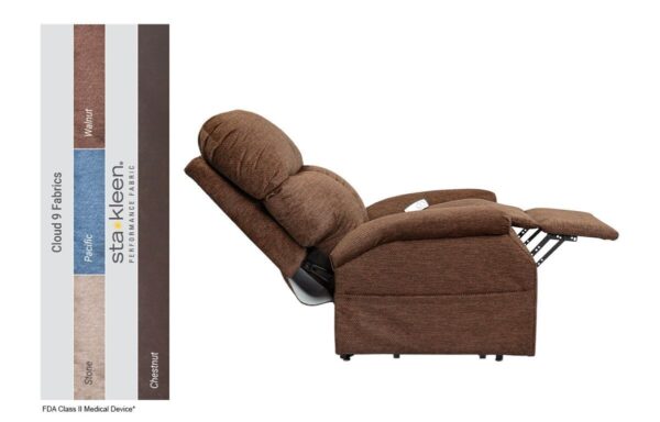 Choose from four standard Cloud 9 fabric options, or you can upgrade to Lexis Sta-Kleen Chestnut faux leather. We include a standard 9-volt battery backup in case you experience a power outage.