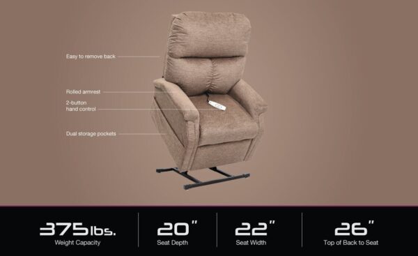 The Essential Collection comes standard with a removable backrest, which makes moving and setting up your lift chair a breeze. Functionally, the motorized mechanism provides smooth, quiet operation as you transition from one setting to the next.