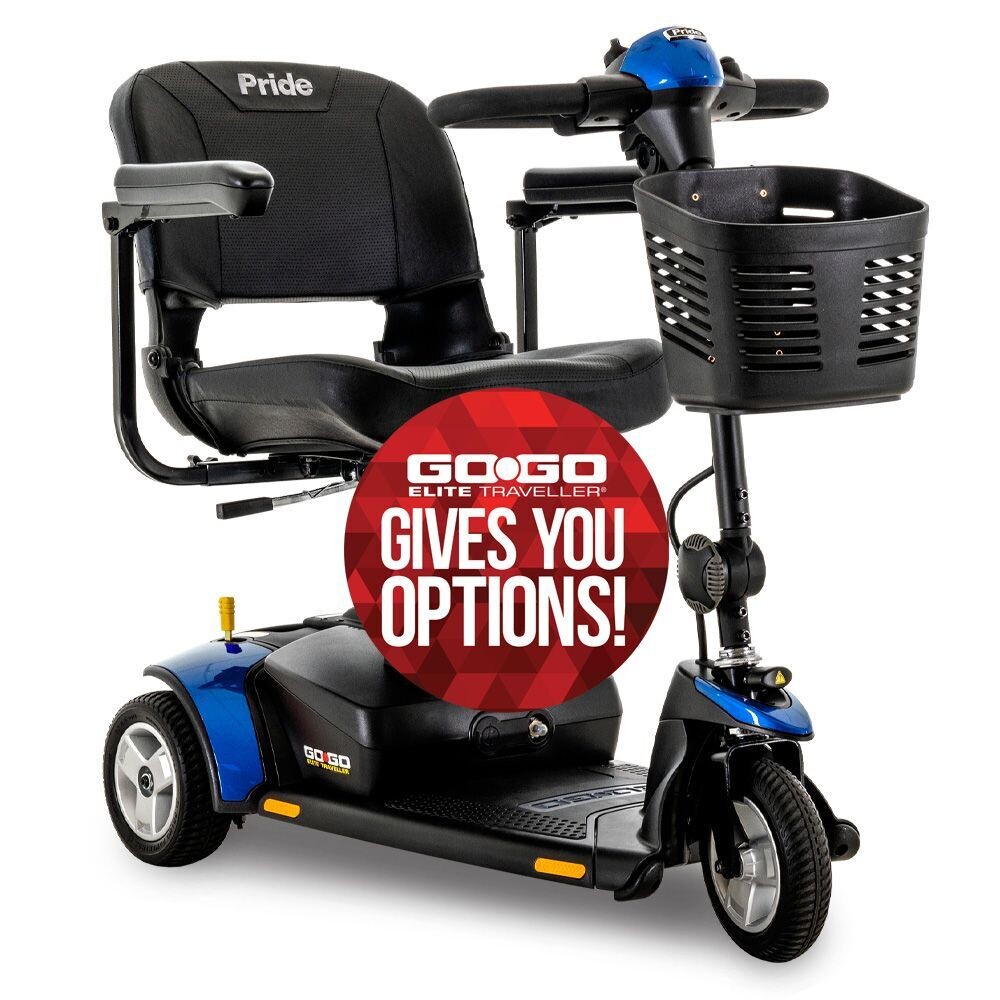 The Go Go Elite Traveller® 3-Wheel brings you top-ranking mobility with a spacious deck for your feet and legs and a comfortable 17″ x 17″ swivel seat. That means when you roll up to the dinner table, or need to disembark, simply pivot your seat.