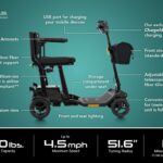 Folding in seconds to a height of 12″ without having to remove the seat, the Go Go Super Portable scooter features Charge360 technology for convenient, magnetic battery charging and weighs just 41.6 pounds without the battery.