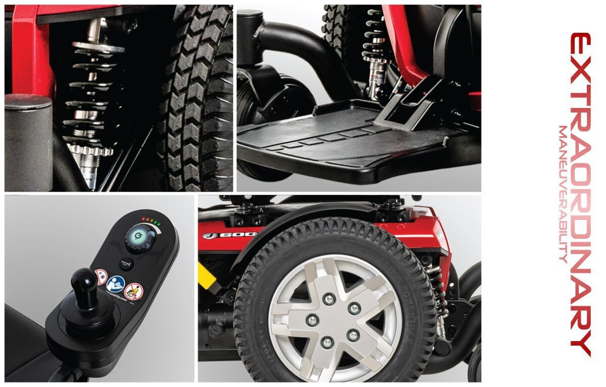 Life may be complicated, yet your power chair should be simple. The Jazzy® 600 ES has 14-inch drive wheels and independent front casters that handle terrain changes easily. Enjoy aggressive precision, a tight turning radius and a flawless design.